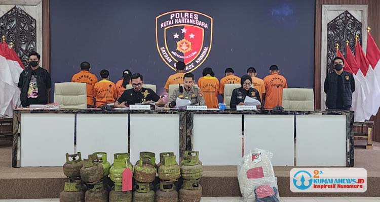 KUMALANEWS.ID, KUTAI KARTANEGARA – Polres Kutai Kartanegara (Kukar) menangkap tujuh pelaku pencurian 93 tabung gas elpiji 3 kilogram dari sebuah toko sembako di Jalan Bara Sakti, Perum Rangga Yuda, Kelurahan Mangkurawang, Kecamatan Tenggarong. Polisi juga mengamankan seorang perempuan yang diduga menjadi penadah.