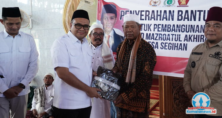 Bupati Kutai Kartanegara, Aulia Rahman Basri, menyerahkan secara simbolis bantuan untuk masjid di Desa Segihan sebagai bentuk dukungan pemerintah daerah terhadap pengembangan fasilitas keagamaan dan kegiatan masyarakat setempat.