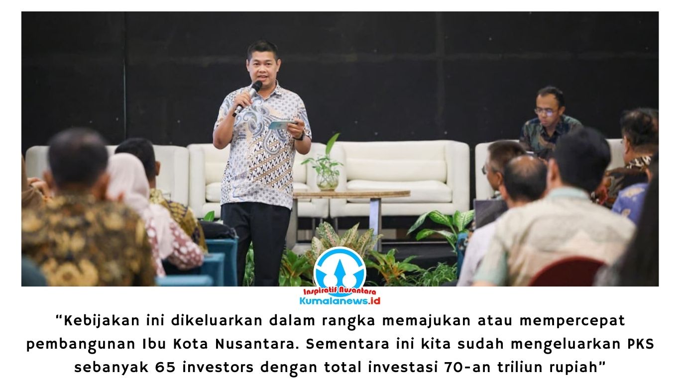 “Kebijakan ini dikeluarkan dalam rangka memajukan atau mempercepat pembangunan Ibu Kota Nusantara. Sementara ini kita sudah mengeluarkan PKS sebanyak 65 investors dengan total investasi 70-an triliun rupiah,” ujar Ferdinand.