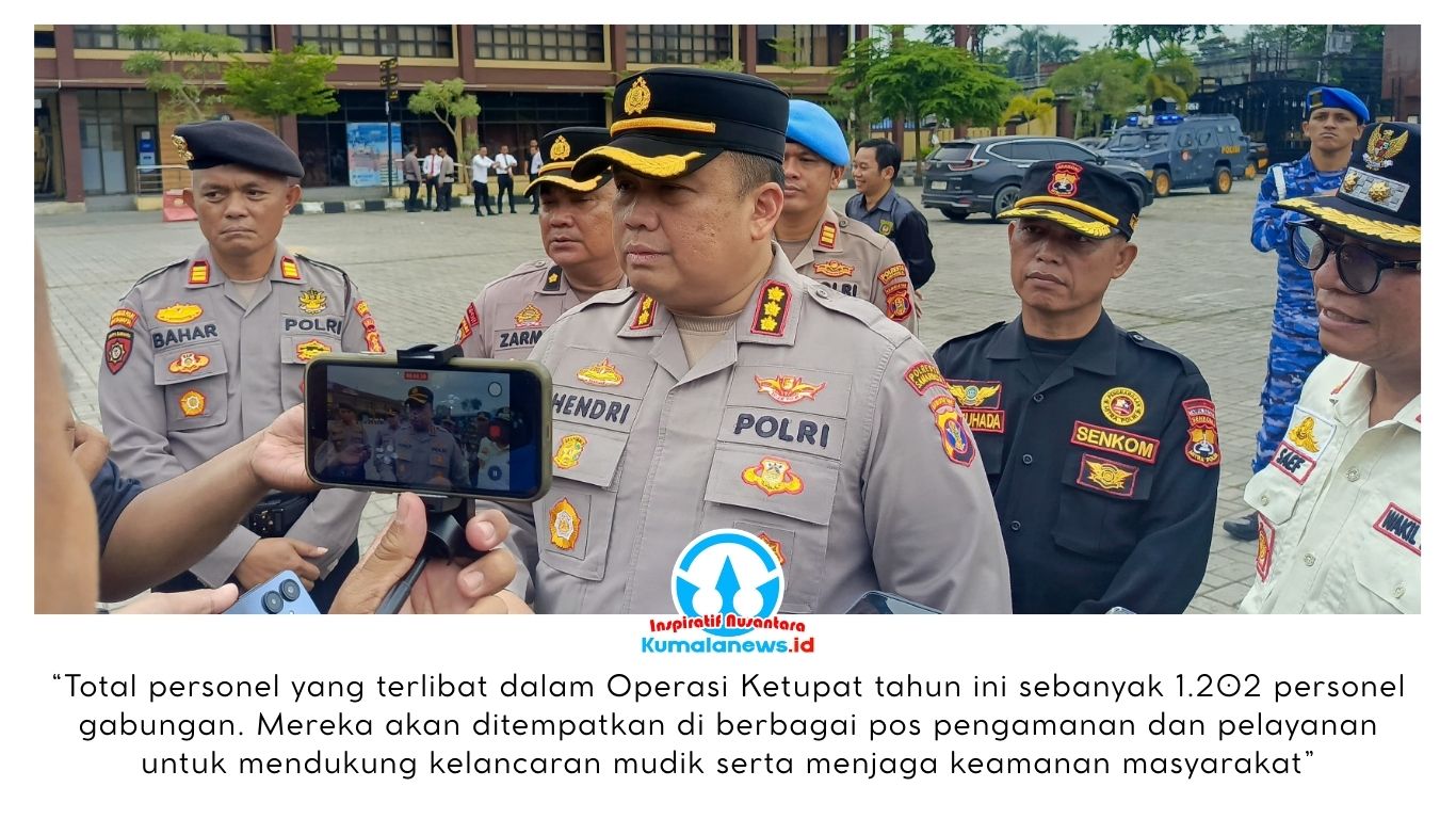 “Total personel yang terlibat dalam Operasi Ketupat tahun ini sebanyak 1.202 personel gabungan. Mereka akan ditempatkan di berbagai pos pengamanan dan pelayanan untuk mendukung kelancaran mudik serta menjaga keamanan masyarakat,” ujar Hendri Umar kepada awak media.