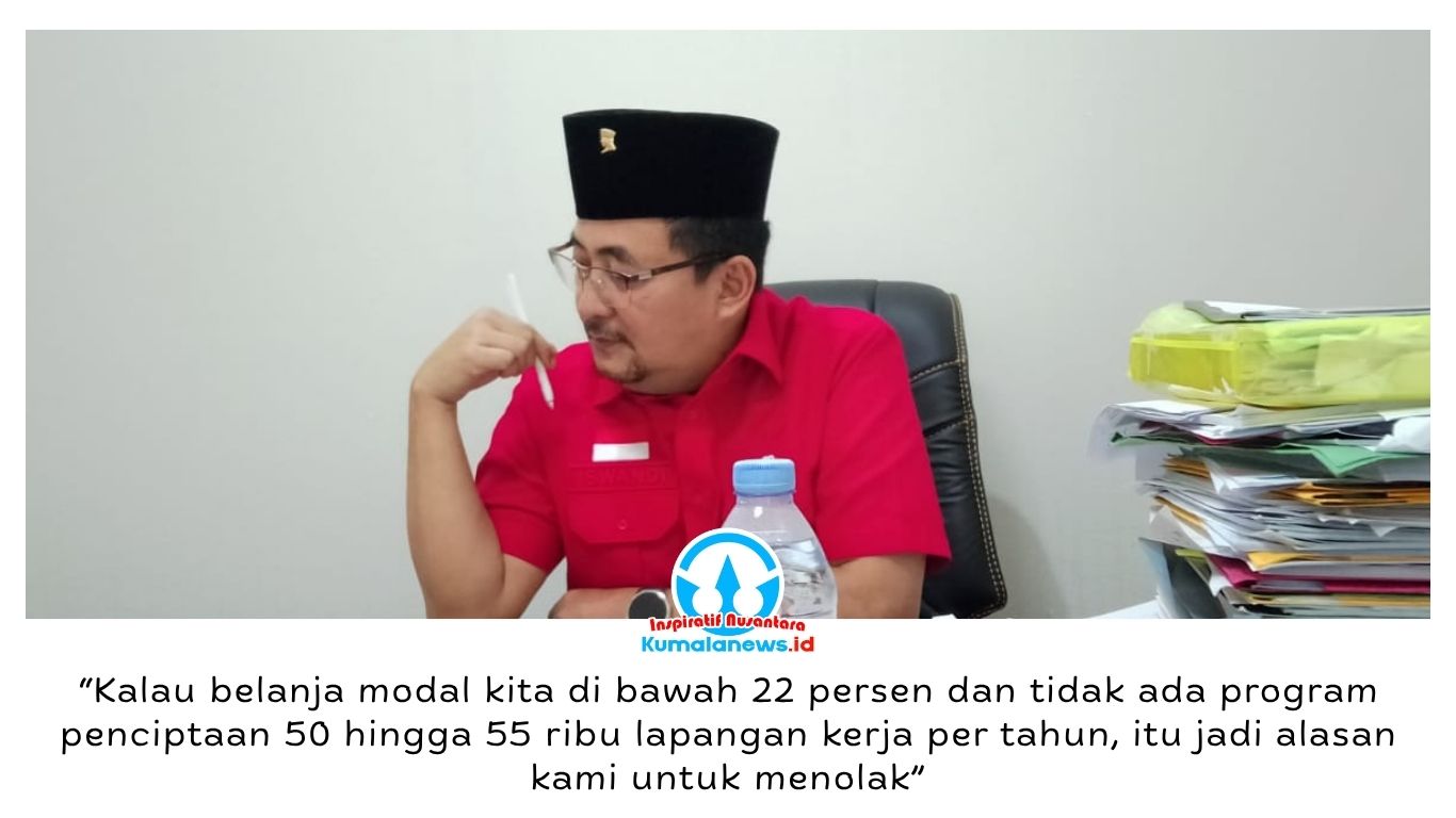 “Kalau belanja modal kita di bawah 22 persen dan tidak ada program penciptaan 50 hingga 55 ribu lapangan kerja per tahun, itu jadi alasan kami untuk menolak,” tegasnya.
